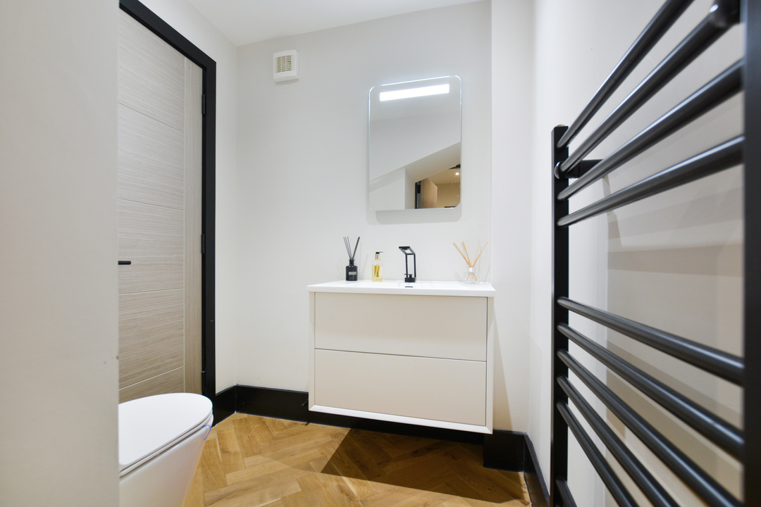 On the first floor you have a luxurious main bedroom with a sleek ensuite bathroom and access out onto the exceptional roof garden area. There is also a second double bedroom with another chic ensuite.