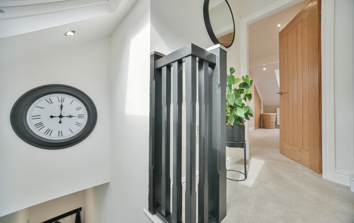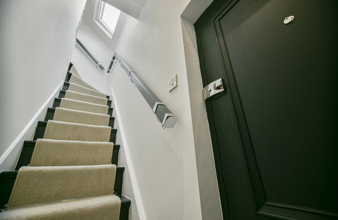 Set within an exclusive building of just five residences, the apartment occupies the top floor, accessed via a staircase enhanced with bespoke handrails and a tailored carpet runner, an elegant introduction to the space.
