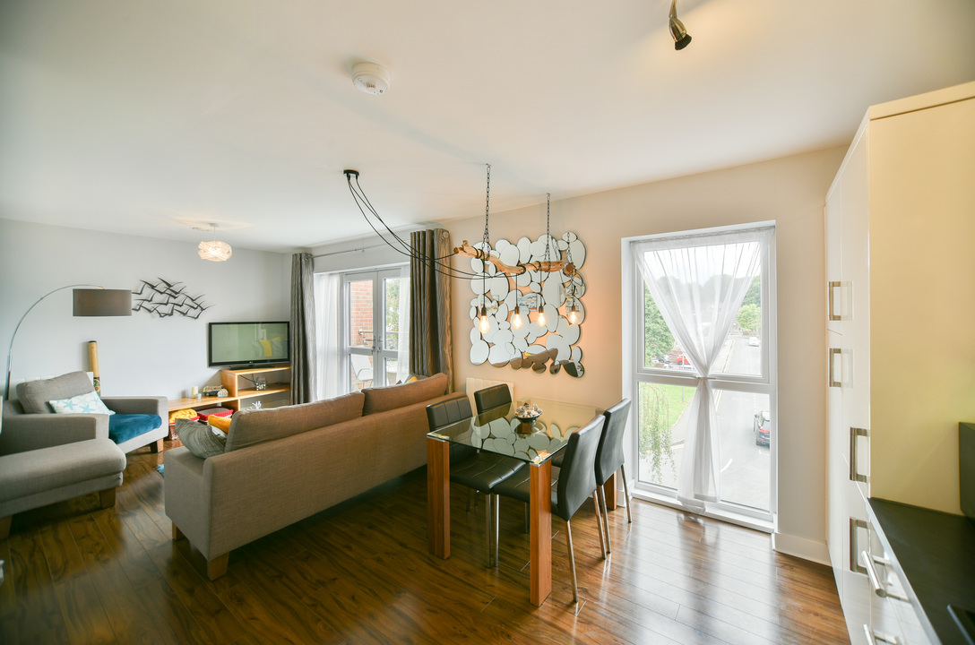 Step inside to find a spacious entrance hall leading to two generously sized bedrooms, including a principal bedroom with en suite, and a stylish main bathroom, offering flexibility for couples, professionals, or small families.