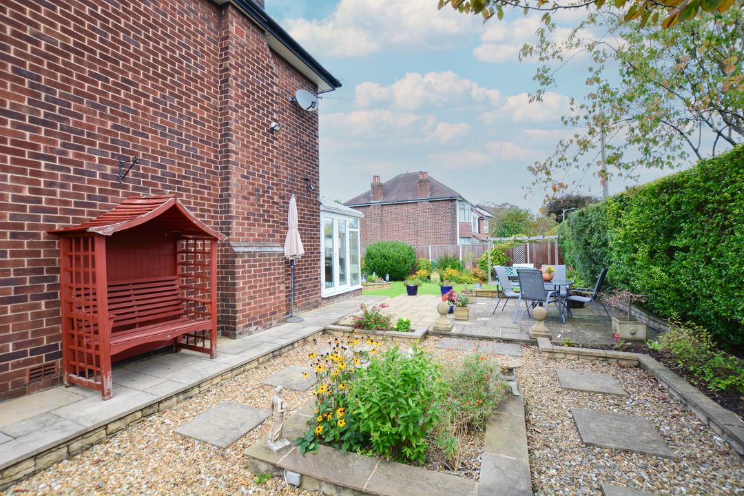 Externally, this property truly shines. To the front, a private driveway offers parking for two cars. Secure gated pathways lead to a stunning rear garden, beautifully landscaped and offering multiple zones to enjoy. An ornamental side garden with patio seating, a spacious lawn, and a rear decking area provide the perfect backdrop for summer entertaining, family play, or simply unwinding in a peaceful setting.