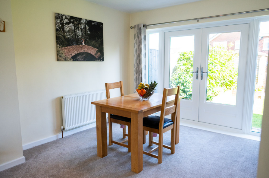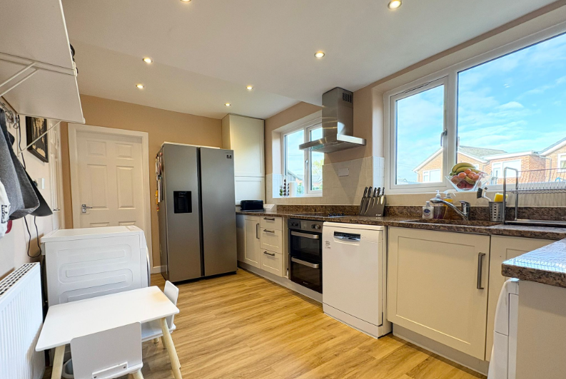 Inside, you’ll find bright, well-proportioned rooms with direct garden access from the main living space. Outside, enjoy a generous garden plus off-road parking for three cars.