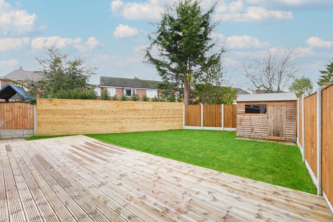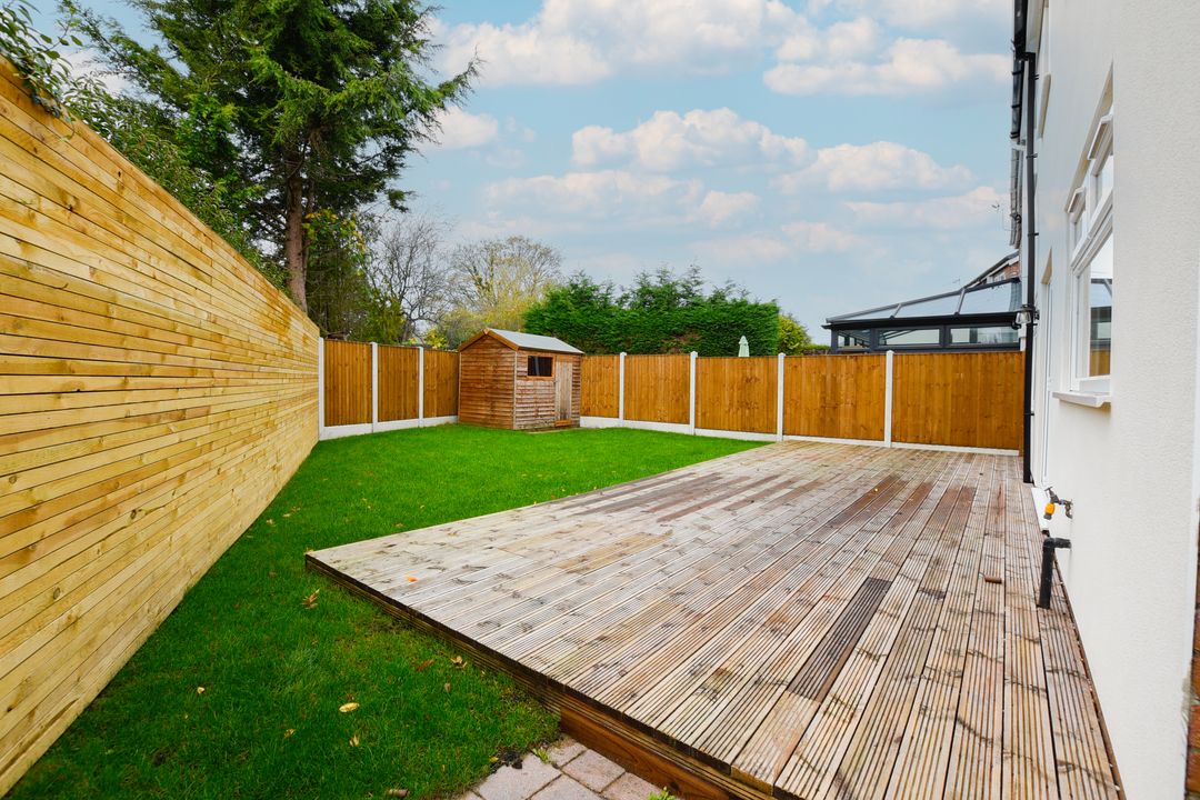 The exterior is just as impressive. The landscaped rear garden features a large decked area ideal for outdoor dining and relaxation, a generous lawn and the fresh modern look of new rear rendering, creating a perfect low-maintenance outdoor space for the whole family to enjoy.