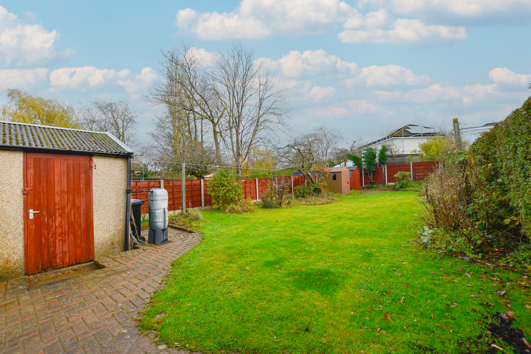 Externally, the rear garden is a standout feature. It offers a fantastic, generously sized lawn with mature borders, a detached garage and two useful sheds, giving great potential for gardeners or families alike.