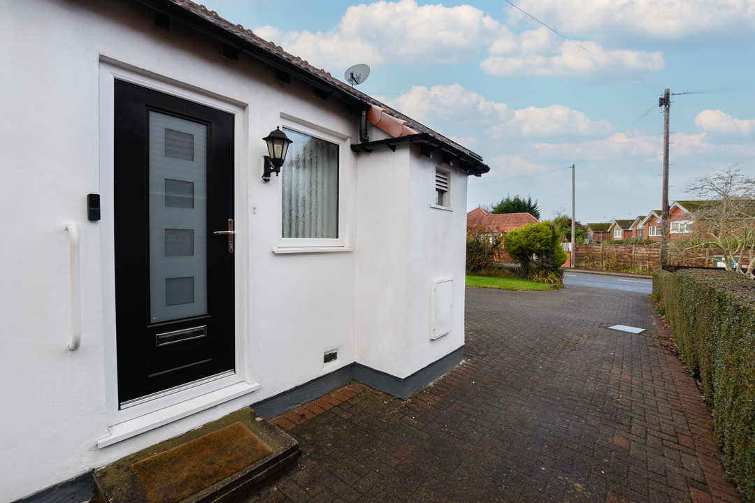 Set back from the road behind mature hedging, the property is approached via a generous block-paved driveway offering parking for multiple vehicles and complemented by a neat lawned frontage.